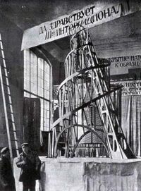 Khi Vladimir Tatlin đã trở thành một họa sĩ bậc thầy, thì cũng là lúc sự nghiệp kiến trúc của ông bắt đầu nở rộ và những công trình thiết kế của ông đã tôn ông trở lên là một kiến trúc sư nổi tiếng của nước Nga. Một đồ án thiết kế đồ sộ - Đài tưởng niệm quốc tế thứ ba, hoặc còn được biết với tên gọi tòa tháp Tatlin, đã được xây dựng kế hoạch trong năm 1920. Tòa tháp cao 1300 feet được kết cấu bằng sắt, thép. Công trình này được thiét kế hai đường xoắn ốc, với ba khối mái che bằng thủy tinh có thể luân phiên, khối thứ nhất sẽ được di chuyển luân phiên một lần trong một năm, khối thứ hai được thiết kế trong trạng thái hình chóp và được quay mỗi tháng một lần, khối thứ ba hình trụ được quay luân phiên mỗi ngày một lần. Vladimir Tatlin đã thiết kế đồ án này như một kiệt tác kiến trúc, nhưng do kinh phí quá lớn để xây dựng công trình này, do vậy tòa tháp Tatlin đến nay vẫn chưa được thực hiện.