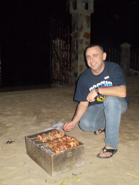 Dima đến từ nước Nga rất vất vả vì phải vừa nướng sasluk vừa phải trông chừnghò dô đồng bếp trưởng (về phía VN) Virus, đ/c thường xuyên bỏ vị trí đi làm các việc dông dài khác: