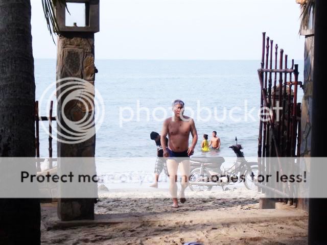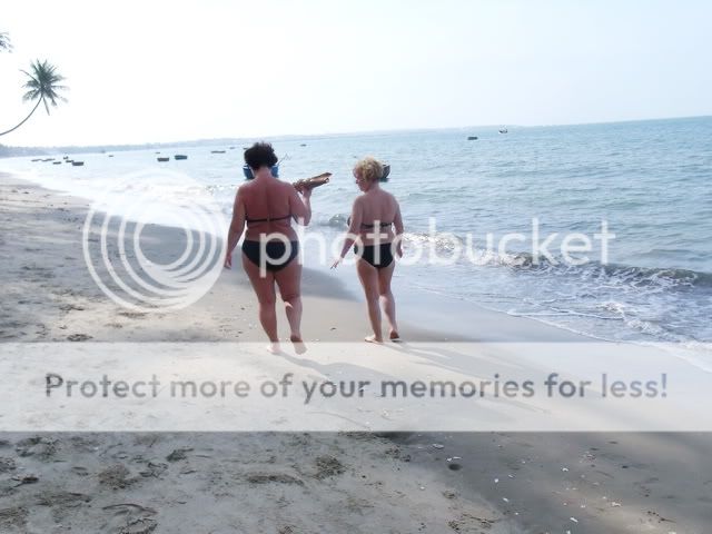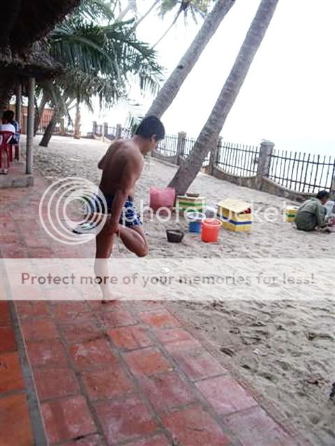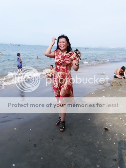 Biết rằng cặp chân nõn nà này bị .. đứt giày, thế là phải "chân trần trên cát". Đi thì không sao, đứng lại (cười duyên để chụp ảnh) thì nóng bỏng chân! Thế là một cặp chân còn dép khác ái ngại, nhường cho bạn một chiếc