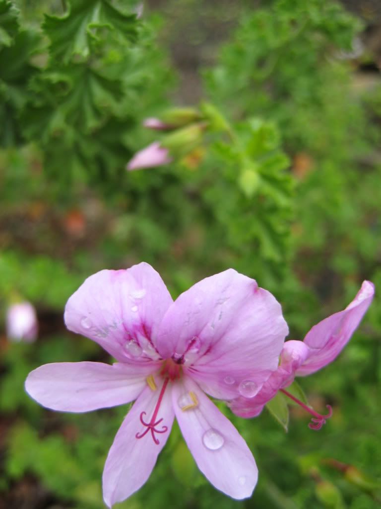 Trên sân thượng, cây cỏ được tắm mát tươi tỉnh. Không cần tưới cây nên CK tranh thủ "chộp" mấy em hoa ướt sũng, run rẩy: