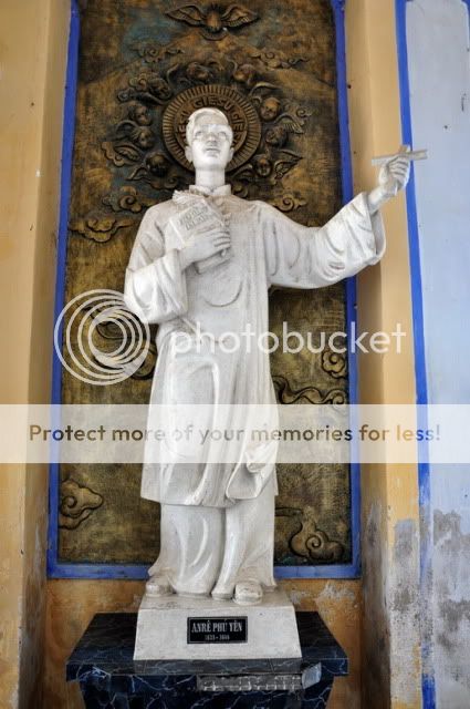 Tượng Anrê Phú yên: Tại nhà thờ này còn lưu giữ được một ít tóc của chân phước Anrê Phú Yên: Đặc biệt ở đây đang trưng bày cuốn sách bằng chữ quốc ngữ đầu tiên của Việt Nam, in năm 1651 tại Roma, Ý. Đó là quyển giáo lý "Phép giảng tám ngày" của Alexandre de Rhodes (người dân địa phương gọi là cha Đắc Lộ) - người khai sinh ra chữ quốc ngữ. |