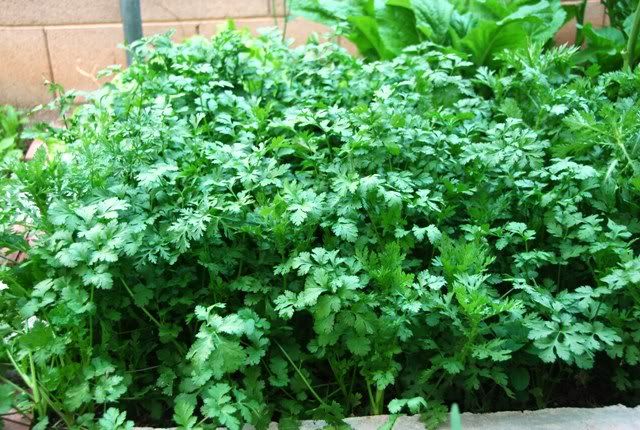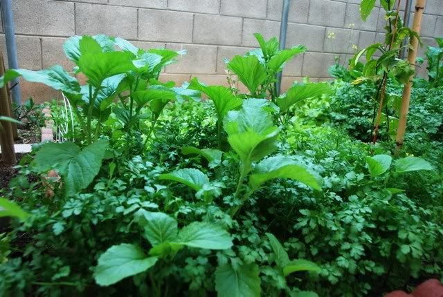 2. Dân Bắc gọi là rau Mùi Tàu ạ 3. Rau cải Mỹ chen lẫn 1 ít thân lá của Cà Rốt và rau mùi 6. Như trên, cũng luống ấy nhưng bác Geo bước thêm 1-2 bước sang trái 7. Nhiều rau mùi ta 8. Ngoài bắc gọi là Húng Bạc hà hay Húng xoăn, rau thơm để cho vào phở khác cơ ạ. Toát mồ hôi lưỡi!