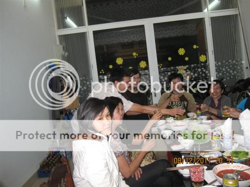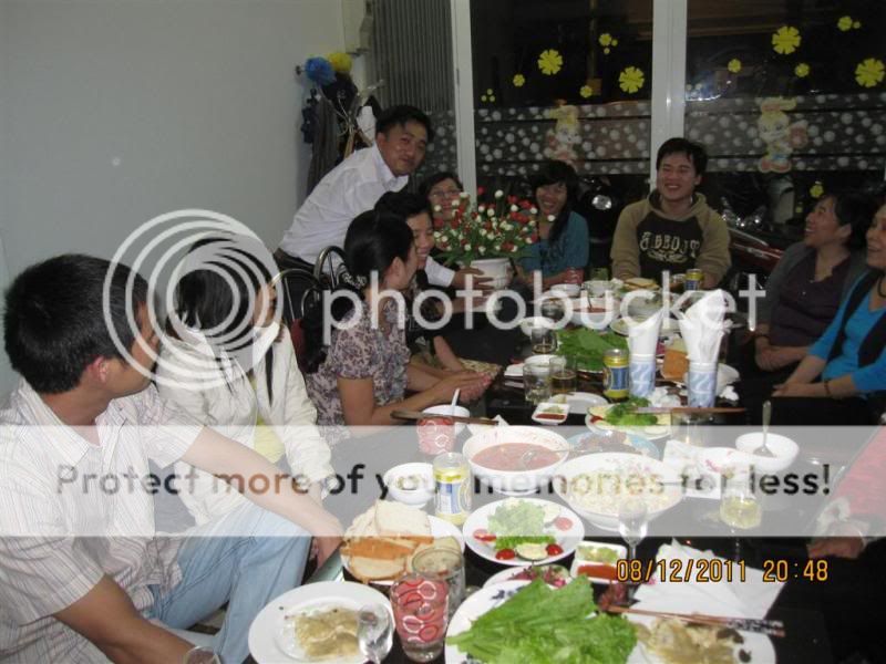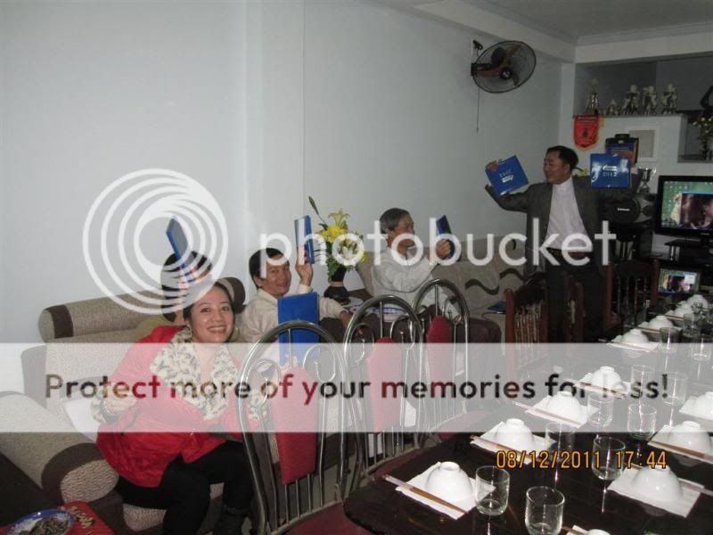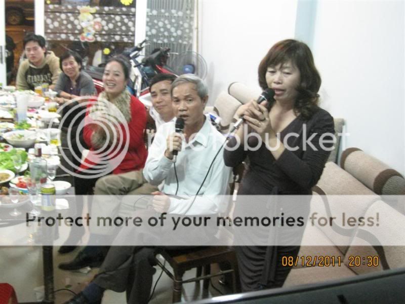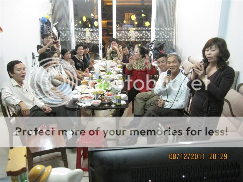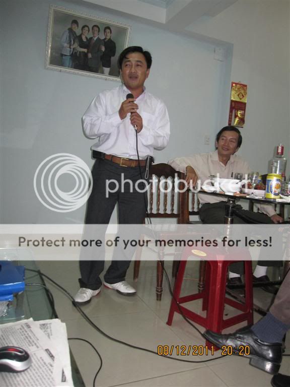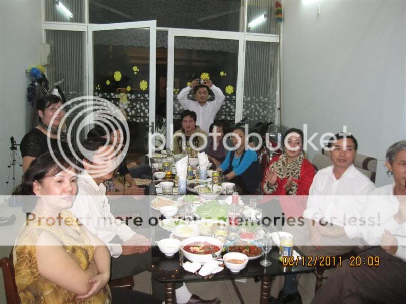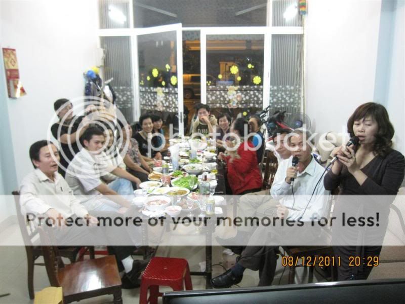 Từ trái qua: Gấu nhà bác Nish, bác Gió nhẹ, sau lưng Gió là bác Chaika, tiếp đến là em, rồi tới bác Anka đang cầm mic. Ngồi gần cửa ra vào là bạn KUN, thanhdieu, priatno, cogaidigan, chàng Gấu nhà bác Anka và bác Miền Trung.