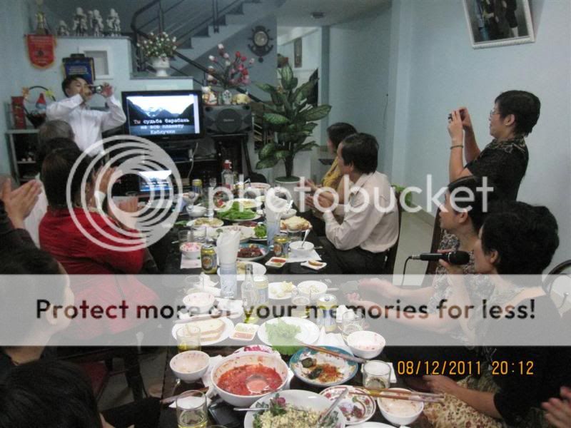 Oài, nhìn ảnh mà thấy vui lây cùng mọi người. Đông bạn hiền và món Nga ngon quá. Em nhìn thấy cả món Bors nữa, bác nào đạo diễn món này đấy? Em thấy có bày cả sợi "Maionhes" dài dài ở trên mặt bát Bors nữa Nào là Saslưc, Xalat, Pemeni - chẹp chẹp - toàn món ngon cả.