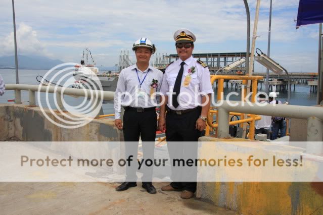 Như các báo đài đã đưa tin: hôm qua 27.5.09 NMLD Dung Quất chúng em có làm cái lễ gọi Là lễ xuất lô sản phẩm đầu tiên bằng đường biển. Nghĩa là xuất SP qua cái Cảng biển, nơi mà nhiều mem của NNN chúng ta đãng từng có mặt. Lễ nào cũng thế có văn công (Đoàn ca múa Chim Mía, ý quên Chim Yến của QN) đến biểu diễn, có các quan chức cùng đến chung vui và chứng kiến, có vỗ tay, có phát biểu, có cắt băng…. Vài thông tin về việc xuất Sản phẩm đầu tiên bằng đường biển: tàu Hải Linh 06 với trọng tải 5.000 DWT đã tiếp nhận thành công 5.000 m3 dầu hỏa đầu tiên của nhà máy lọc dầu Dung Quất. Lô dầu hỏa thương phẩm này sẽ được vận chuyển vào tổng kho của Tổng công ty dầu Việt Nam - PV Oil tại Vũng Tàu và tiêu thụ trên thị trường miền Nam. Toàn cảnh Cảng xuất sản phẩm: Lễ được tổ chức long trọng: Tàu Hải Linh 06 đón nhận Lô sản phẩm đầu tiên: Vị thuyền trưởng và những người bạn của NNN: