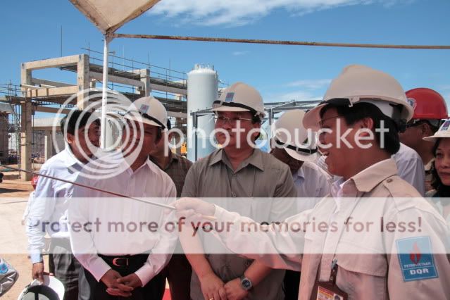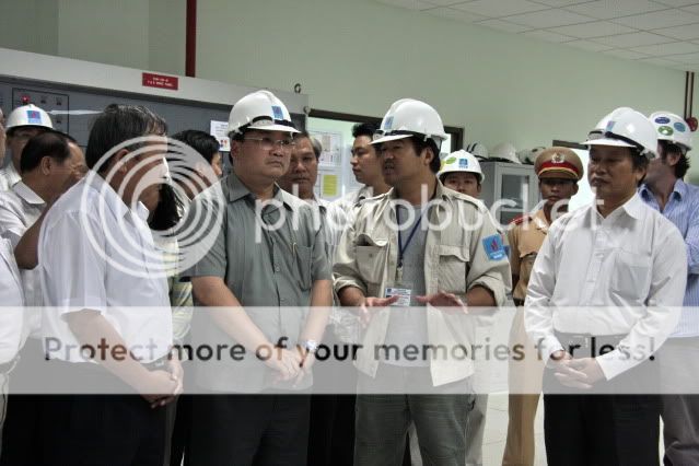Trời miền Trung nắng như đổ lửa. Chúng em đang căng ra, hoàn thành và giữ vững tiến độ chạy thử để có thể đến tháng 10 khánh thành NMLD Dung Quất. Giữa lúc nắng nôi mệt mỏi thế này có phái đoàn của Chính phủ do anh Hải dẫn đầu vào thăm và động viên làm chúng em cảm kích và phấn chấn lắm. Thôi thì để cái "thớt" của em nó không bị mốc, xin được up vài tấm ảnh hôm nay anh Hải vào thăm NMLD chúng em: Thăm Nhà điều khiển trung tâm của NMLD: Đ/c tre trẻ mặc đồ bảo hộ lao động là Nguyễn Hoài Giang Tổng giám đốc Công ty Lọc hóa dầu bình Sơn của chúng em: Thăm công trường Nhà máy sản xuất Polypropylene - cũng thuộc NMLD đang được xây dựng: Thăm khu tập thể CBCNV của NMLD Dung Quất mới được xây dựng tại thành phố Vạn Tường. Đây là một góc của khu tập thể. Nóng nắng quá, mọi người vào trong nhà uống nước, nhõn mình em phải đứng ngoài trông xe, he he Nhà em là dân ngồi bệt, nhưng được cái chơi tennis không đến nối nào, do đó hay được vác cụ cho làm "Triển Chiêu" để hầu các cụ. Cũng vinh dự các bác nhỉ, em phải phóng to tấm ảnh này treo giữa nhà để con cháu sau này thấy mà tự hào là cha, ông nó được "Triển Chiêu" và chụp hình với PTT. Từ trái sang: ông Trưởng ban quản lý Dự án NMLD Dung Quất, anh Hải "béo", nhà em, ông Phó bí thư tỉnh ủy QN: