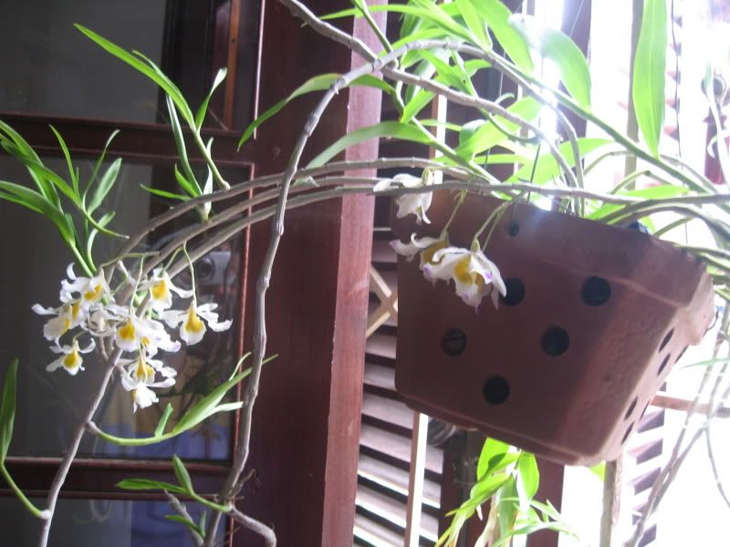 Nhà em hôm nay có giò lan này nở, bõ công bao nhiêu ngày tưới tưới xịt xịt các bác ạ. Em chụp post tặng các bác.