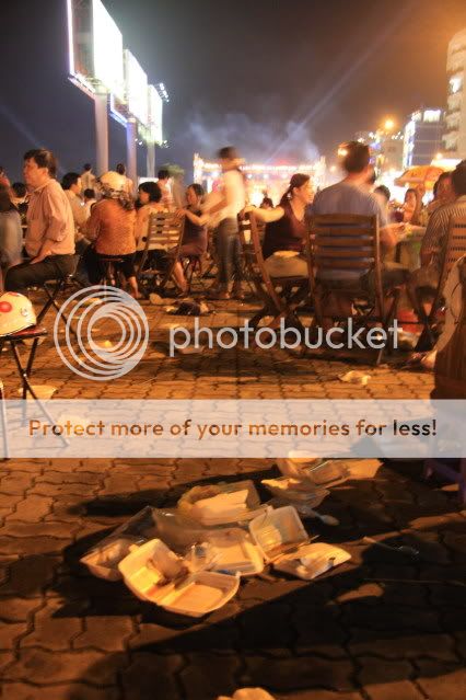 Cảm ơn bác Hổ Gìa. Đêm pháo hoa, ai cũng bay lên "Bay lên nào, em bay lên nào, Hội vui toàn thắng tưng bừng pháo hoa...". Ai cũng ngước lên để ngắm nhìn vẻ đẹp lộng lẫy, bác Hổ cũng vậy, bác cũng ngước nhìn trời đêm Đà Nẵng chưa bao giờ lunh linh huyền ảo đến thế. Nhưng em phục là bác vẫn đủ tỉnh táo để nhìn...xuống dưới chân mình, và ghi vào ống kính những gì chưa đẹp mắt, có thể gây ấn tượng xấu với du khách trong và ngoài nước: Sự nhôm nhoam, tình trạng xả rác bừa bãi, mất vệ sinh nơi công cộng của dân ta.