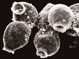 Những "bình gốm" tý xíu dưới đây có kích thước đo bằng đơn vị micromet (= 1/1000.000m). Ảnh do F. Paris, bạn tôi, chụp dưới kính hiển vi điện tử quét.