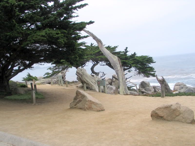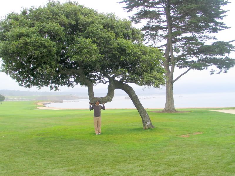 Ngày thứ bảy 22 tháng 8 tôi được nghỉ để phục hồi sức khoẻ sau chuyến đi dài ngày mà nhiều người khen là "cụ" khoẻ thế, đi hơi bị khiếp. Ngày chủ nhật 23 tháng 8 tôi lại được gia đình người cháu đưa đi chơi Pebble Beach (Bãi Pebble). Bãi Pebble nằm gần San Jose - California. Từ San Jose ra đó chỉ khoảng 40p chạy xe, tất nhiên là với tốc độ khoảng 100km/giờ. Chỉ có bấy nhiêu xa mà nhiệt độ chênh nhau trên 10 độ C. Biển mát lạnh, phải mặc thêm một cái áo len. ![]() Gần một giờ sau tôi đã đứng trên bờ biển, thuộc khu vực "Lái xe 17 dặm". Vé vào cửa khu này là 10 $ ![]() Phía sau lưng chúng tôi là "cây cô đơn" - một cây thông đứng trên mỏm đá giữa trời mà reo! ![]() Cây "ma" - người ta bảo thế! ![]() Thông ở khu vực này rất khác thông mọi nơi: tán cây xoè ra chứ không đâm thẳng lên trời ![]() Định hỏi mua cái xe cũ này (sản xuất năm 1936), nào ngờ nó còn đắt hơn xe mới ![]() Đành ra sân Golf chơi vậy ![]() Bỗng có cái cây sắp đổ, tôi phải kê vai đỡ nó, chờ Công ty cây xanh đến xử lý... ![]() Đi tìm quán cơm bình dân... ![]() Chào nhé, cây cô đơn! Ta về đây... Sẽ chẳng bao giờ gặp lại. ![]() Quay về ngôi nhà nguời cháu ở trên đồi.