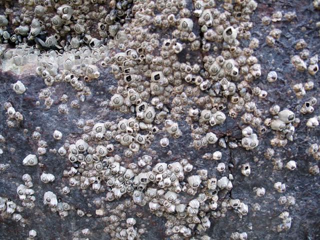 Những con Balanus (Sun), một loại động vật Thân đốt (có họ hàng xa với chuồn chuồn, bọ cạp... !) bám đầy vách đá ven biển.
