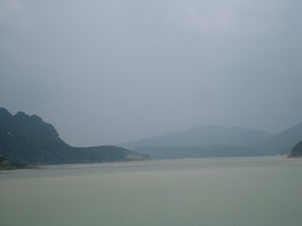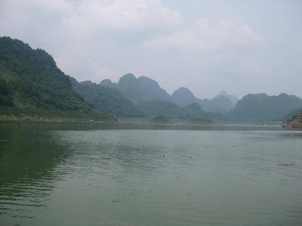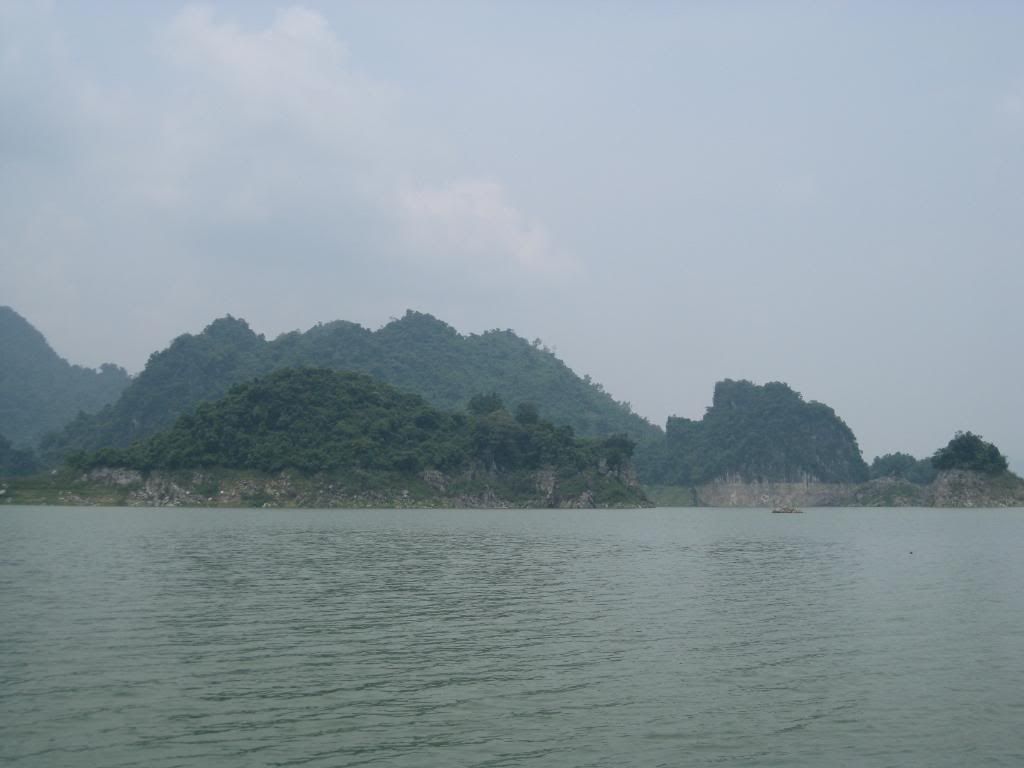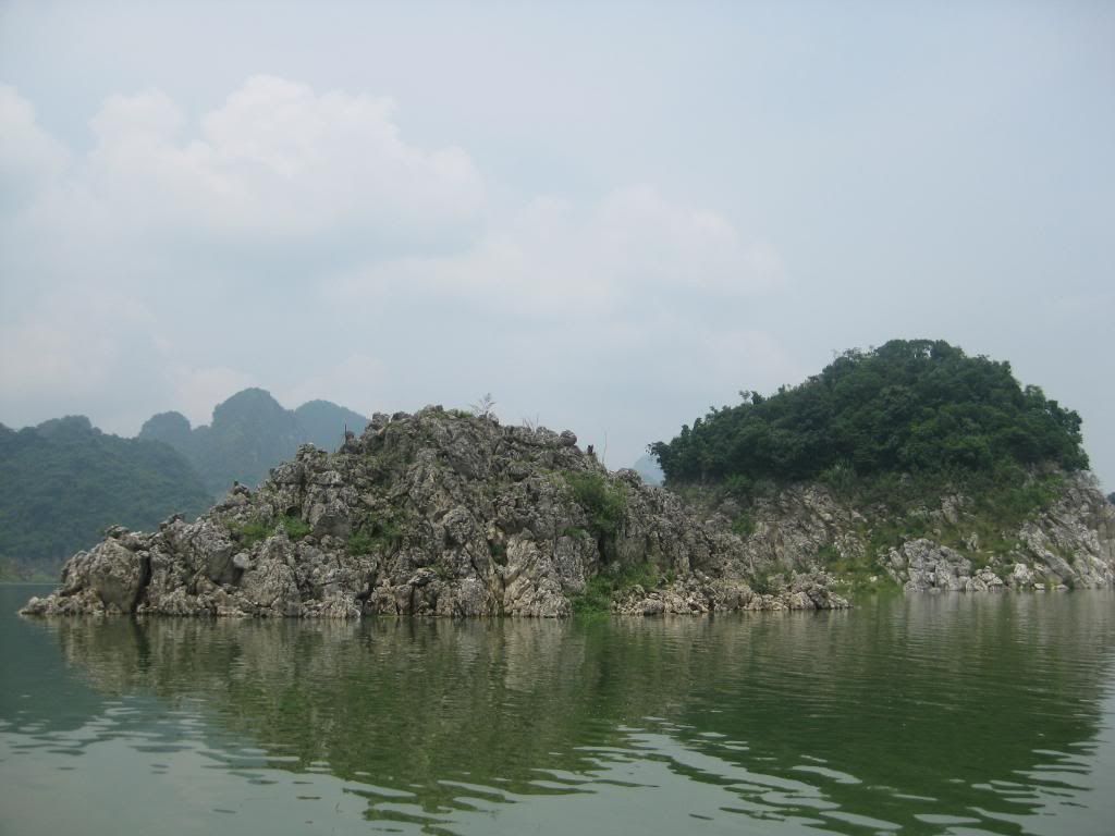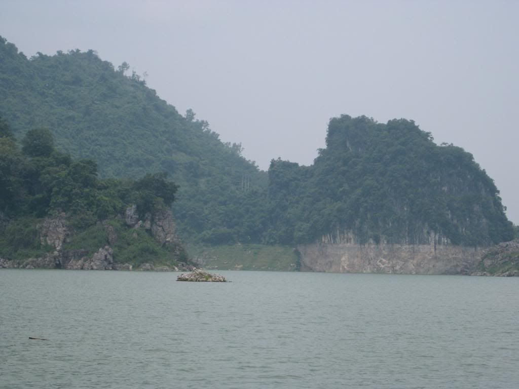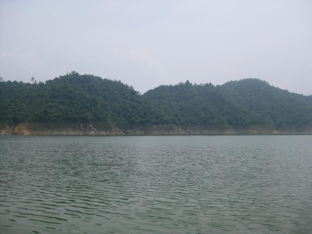 Bây giờ là mùa nước cạn nên các bác có nhìn thấy những vệt nước không? Khi hồ đầy nước đang cao đến vạch ngang ấy