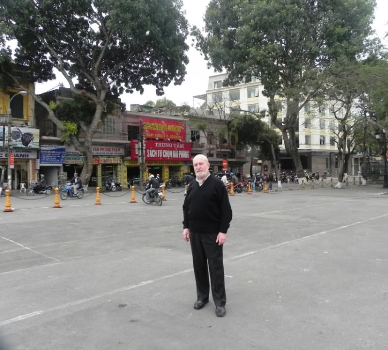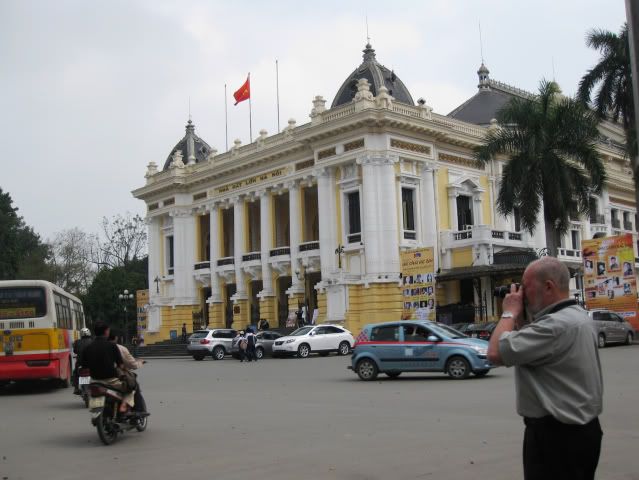 Hôm nay, cụ đã qua trở lại đúng nơi chụp ảnh với 2 người bạn trước kia-trước Nhà hát Lớn HP. Hậu cảnh vẫn là những ngôi nhà đó, điểm thú vị đó vẫn là Hiệu sách sau 44 năm vật đổi sao dời. Chúng ta hãy cùng tìm các điểm khác nhau của 2 bức ảnh này nhé. Ôi, thời gian.....