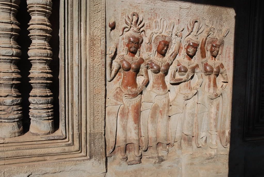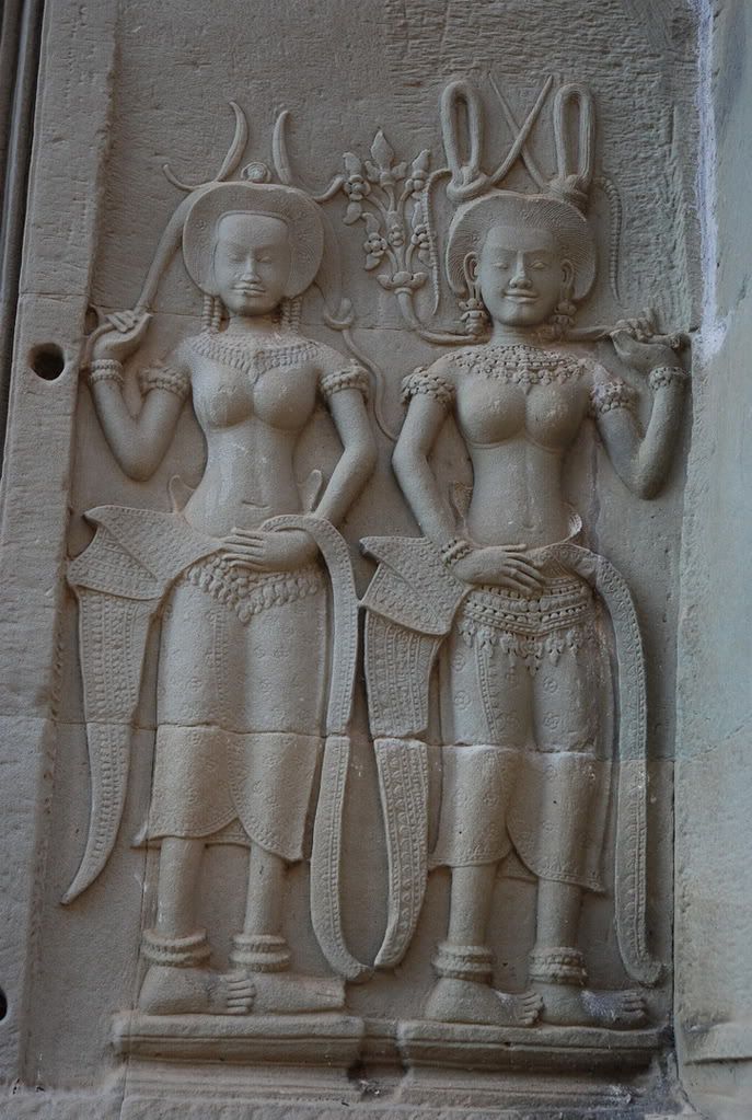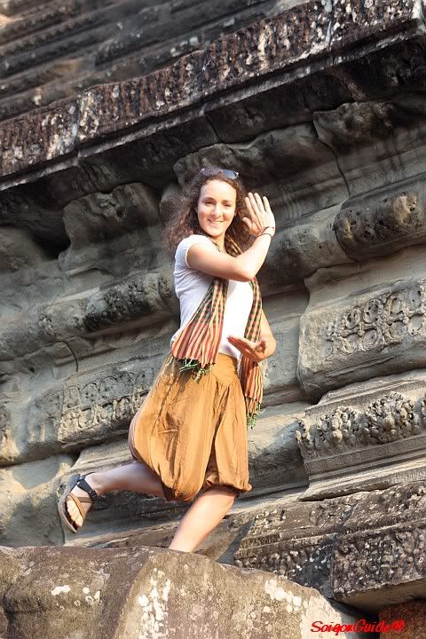 Áp-sa-ra thì trang phục các thiếu nữ khá đơn giản nhưng mà rất...rất đẹp. "Áp-sa-vô" thì em chịu, em đồ rằng...phải cao thủ lắm mới photo sọp được. |
