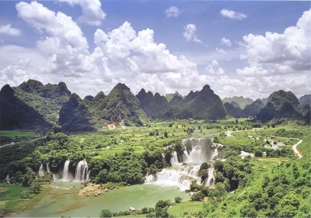 Vâng, đó chính là thác Bản Giốc, nằm trên sông Quây Sơn (có khi gọi là Quế Sơn), huyện Trùng Khánh, tỉnh Cao Bằng bạn ạ. Có lẽ đây là thác đẹp nhất của VN. Hiện nay 1/2 nhánh bên phải của nó thuộc TQ. Và mặt nước phía dưới thác chủ yếu do thuyền du lịch TQ họat động phục vụ khách du lịch.