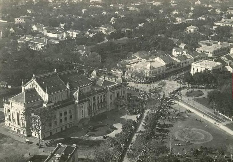 Trước năm 1945 ở đây còn có tượng “ Nữ thần tự do” ( Bà đầm xòe) sau thay bằng tượng Toàn quyền Pôl Be ( Paul Bert )