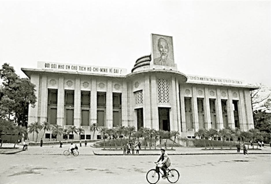Mì nhớ mãi cuối năm lớp 10 ra xem dựng tấm hình Bác trên nóc Ngân hàng. Đầu tiên là trực thăng cẩu khung thép đặt lên nóc tòa nhà, tiếp theo là ốp ván ép, phủ bạt và cuối cùng là các họa sĩ vẽ.
