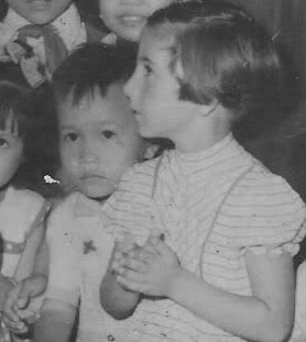 Về lai lịch bức ảnh thì nghe phụ huynh kể lại là do BS Trần duy Hưng chụp khi Mì cùng đoàn của Bác từ Tòa Thị chính sang Ấu trĩ viên (thời đó vẫn còn gọi như vậy). Mì bị các anh chị lớn đẩy bật ra ngoài, may là vẫn có trong hình. Có lẽ do Thị trưởng chụp nên tấm hình này Mì cũng thấy rất ít được công bố.