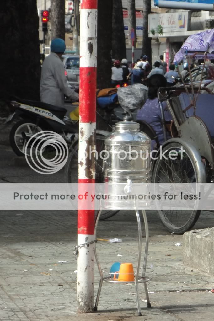 Không biết bình nước của nhà nào để trên vỉa hè dành cho khách đi đường uống tự nhiên và miễn phí. Nhà em khi ấy không khát nước nên không uống, nhưng có lẽ đó là bình nước trà đá.
