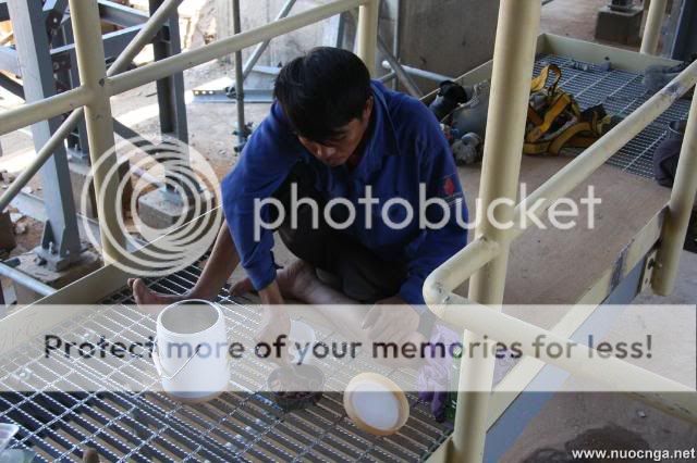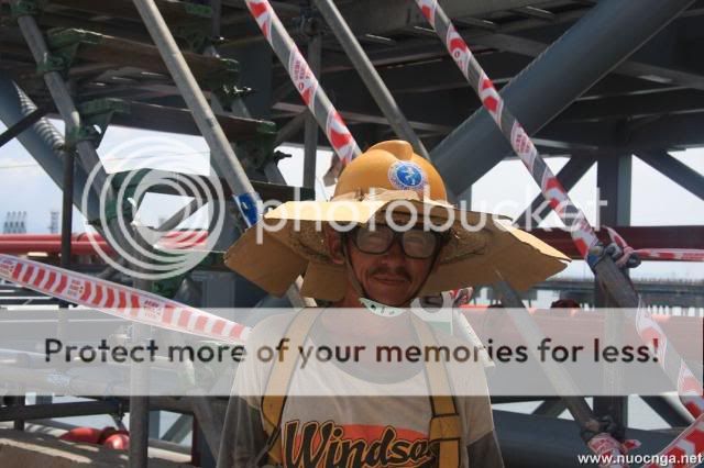 Bác ấy đội mũ trắng - mũ dành cho các sếp trên công trường - thì phải. Mà bác đem máy ảnh chụp nhiều như vậy trên công trường... có sao không bác?