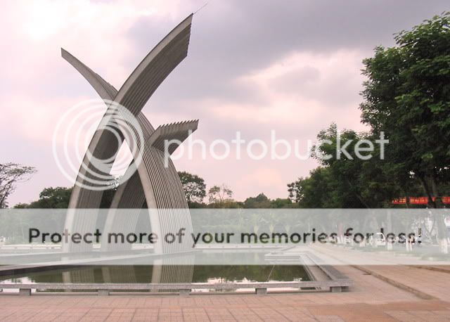 Khi đi ngang khu vực này, nhiều người không hiểu đó là “tác phẩm” gì bởi ngoài hai thanh inox cao trên 20 mét đan xen vào nhau dựng giữa hồ nước, không có dòng chữ nào giới thiệu về tầm vóc và chủ đề của công trình. Đã vậy, cho đến nay “biểu trưng văn hóa” này vẫn chưa chính thức được bàn giao cho đơn vị quản lý khiến sự nhếch nhác càng nhân lên gấp bội. Bên dưới mặt hồ rộng 1.600m2 là nguồn nước đen sì, luôn bốc mùi hôi. Rác thải từ những người vô ý thức quăng xuống đây nổi lềnh bềnh trong khi chẳng có ai dọn dẹp. Theo thiết kế, hồ này sẽ là nguồn chính dùng để phục vụ hệ thống phun nước tuần hoàn khép kín nhưng nếu nó khởi động, có lẽ những người đi ngang khu vực này phải “bỏ của ch y lấy người” vì không thể chịu nổi những tia nước bẩn có mùi ấy. Hệ thống đèn chiếu sáng trị giá hàng trăm triệu đồng từ khi lắp đặt đến giờ vẫn chưa hoạt động. Người dân xung quanh khu vực cứ đinh ninh rằng khi công trình hoàn thành sẽ có khuôn viên sạch thoáng để tập thể dục, hít thở không khí trong lành, nào ngờ “biểu trưng văn hóa” hiện nay chỉ là một cái hồ dùng để chứa nước bẩn và một biểu tượng chưa nói lên được điều gì!