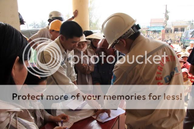Từ hôm bão đến nay, NM chúng tôi ngày nào cũng tổ chức 2 đoàn mỗi đoàn một xe tải chở hàng trăm suất quà, mỗi suất gồm 20 kg gạo vào 300.000đ để cứu trợ cho nhân dân các xã thuộc huyện Bình Sơn, nới có NMLD Dung Quất.