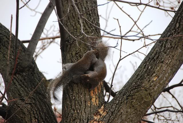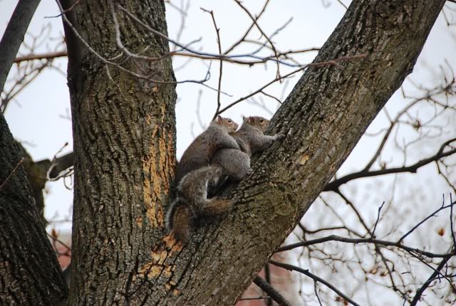 Em cùng một số người đã ngẩn người nhìn thấy một chú sóc leo trèo hồn nhiên trên một cái cây trong Nhà máy in Tiến Bộ. Và một lần dừng chân đèn đỏ chỗ giao Phan Đình Phùng và Hoàng Diệu, cũng nhìn thấy một chú sóc rất đáng yêu trên cây. Chẳng hiểu bọn sóc sống trong nội thành HN thì măm măm cái gì nhỉ?