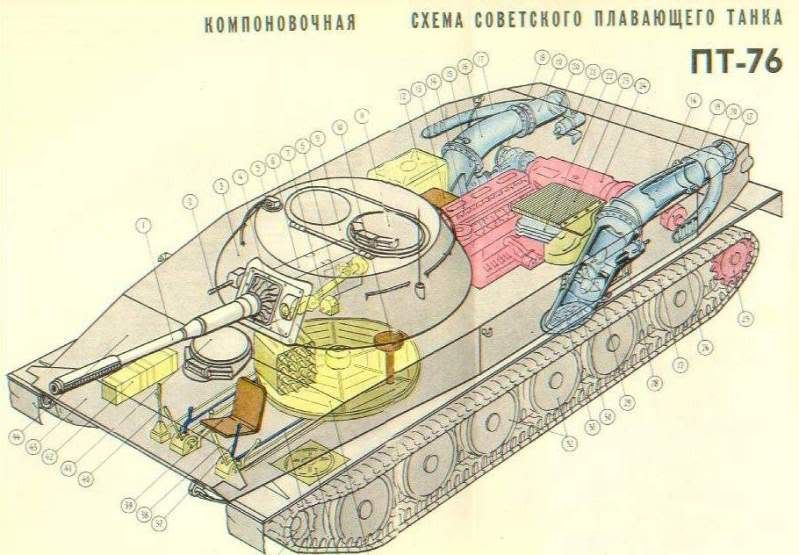 ![]() Cũng giống như nhiều loại tăng của Soviet khác, PT-76 cũng có điểm yếu là khả năng chỉnh nòng pháo chính xuống thấp kém, cho nên nó không thể bắn một cách hiệu quả từ các công sự trên cao ( nó sẽ phải nhô nguyên thân ra thay vì mỗi nòng pháo – ND ). Thiết kế bơi nước làm cho PT-76 to một cách không cần thiết so với phân lớp của nó, và do đó làm cho giáp bảo vệ mỏng hơn các loại tăng nhẹ khác. Gíap khá mỏng ( dày nhất 14mm ở thân và 17mm trên tháp pháo ), nó có thể bị tác hại bởi mảnh đạn pháo hay đạn súng máy nòng .50cal. Thực tế trưởng xe còn là một pháo thủ và sử dụng máy điện đài nên đã làm giảm chức năng chính của anh ta là quan sát. Chiếc PT-76 còn lạc hậu hơn các loại xe chiến đấu khác của Soviet khi không có hệ thống nhìn đêm và hệ thống bảo vệ NBC cho tổ lái. 4 phiên bản chính của chiếc xe khác nhau ở khẩu pháo 76mm. Mẫu đầu tiên gắn khẩu pháo D-56T không có thiết bị thóa khói, mẫu tiếp theo gắn khẩu D-56TM với thiết bị tháo khói và loa hãm giật. Súng máy 7,62mm gắn bên phải pháo chính. Một số chiếc PT-76 được trang bị thêm đại liên 12,7mm phòng không. Khung PT-76 còn được chỉnh sửa để phát triển nhiều loại xe khác như các loại APC BTR-50P và OT-62, pháo phòng không tự hành ZSU-23-4, xe ASU-85 của lính dù, xe tên lửa SA-6/GAINFUL và kể cả các chiếc BMP thay thế PT-76 trong các đơn vị trinh sát Soviet. (daccongbacviet) |