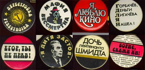Dưới đây, xin giới thiệu một số mẫu huy hiệu- Znachki do các HTX thời cải tổ sản xuất và bán rất chạy. Thời đó, giới trẻ có mốt đeo huy hiệu, như là một cách thể hiện bản thân. Ngoài hình ảnh các ca sĩ, diễn viên...một số huy hiệu thời kỳ cuối cải tổ đã bắt đầu có hơi hướng chính trị như ủng hộ Eltsin, bôi bác thời kỳ Brezniev, đả đảo chủ nghĩa Stalin.vv...vv...