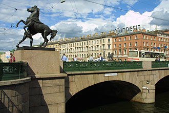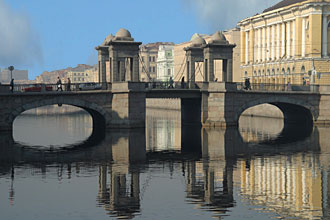 Chỉ vài phút đi bộ xuống kênh Griboedov từ phía đại lộ Nevsky và Thánh đường Kazan, chúng ta bắt gặp ngay cây cầu Nhà Băng của St. Petersburg, đây là một trong những cây cầu bộ hành đẹp nhất thế giới, nó cũng là một cây cầu hẹp nhất trong thành phố, và là một bức tiểu họa kiến trúc có một không hai ở thành phố đêm trắng này.