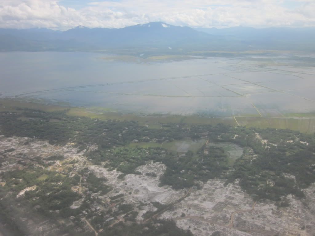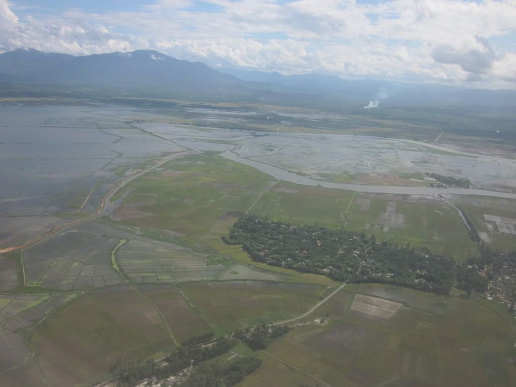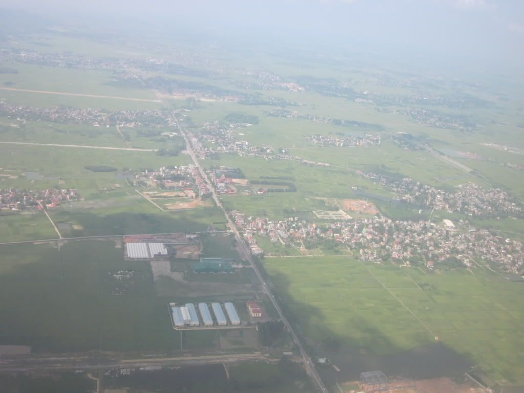 Máy bay cất cánh tại sân bay Phú Bài - Huế, trời mưa nên cảnh hơi mờ mờ