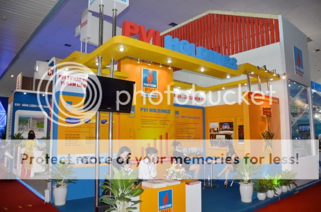 Bác hỏi em "oang oang" thế này, giết em. Sếp em mà biết em không ra thăm gian hàng là em đứt luôn đấy. Gian của PVI Holding hình như chỗm trệ trên vị trí đắc địa - 2 mặt tiền