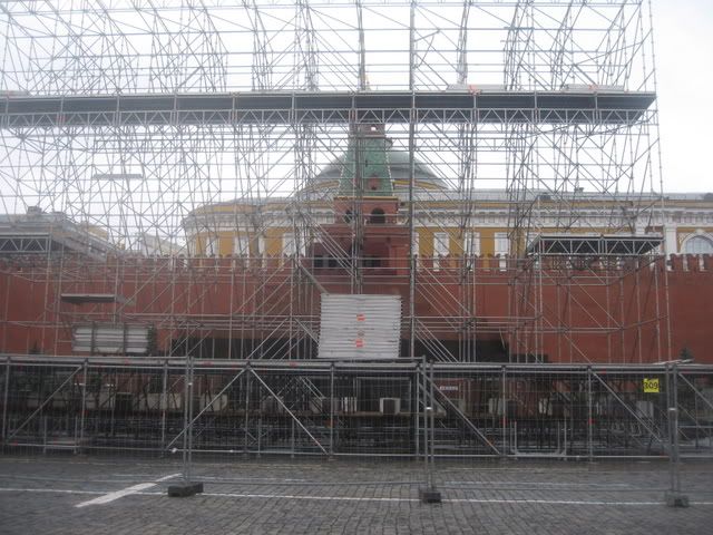 Hôm trước em có lang thang ở Hồng trường thấy họ dựng nhiều giàn giáo (đại để giống thế nên em tạm gọi vậy). Em có hỏi để làm gì, họ trả lời để chuẩn bị cho ngày CMT10 sắp tới. Có một điều em thấy chỗ bên cạnh Lăng Lê nin họ không dựng, họ dựng đúng trước cửa lăng luôn, che luôn lăng.