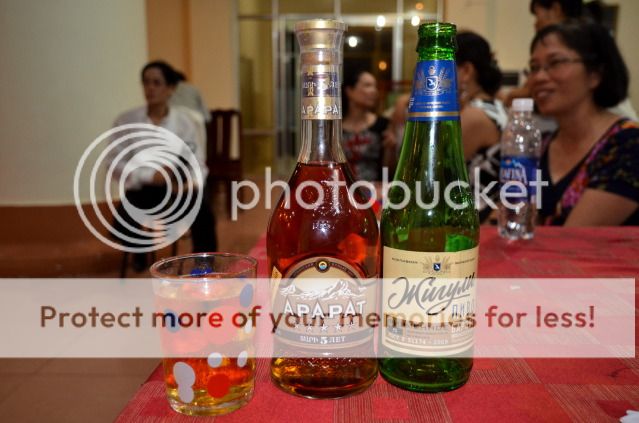 Vì rằng là "ăn một mình đau tức" nên em đã ráng nhịn cái chai Ararat 5 sao bác nhnam, chị Chandaingoaituyen, cũng như vò "Nước mắt hoa cúc" của bác Xamova cho, để dành cho đợt ọp ẹp vừa rồi. Mọi người đã xử thành công và ai cũng tấm tắc. (Cái vò của bác Xamova em đã chắt ra chai, không có hình ở đây ạ ). Rất tiếc đợt ọp ẹp vừa rồi không có các bác. Đành hẹn lần khác vậy. Một lần nữa xin chân thành cảm ơn các bác.