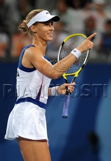 Ngoài ra ở nội dung tennis nữ thì đội Nga chắc chắn sẽ có ít nhất là huy chương bạc, bởi vì trong trận bán kết thì 2 cô gái Nga sẽ gặp nhau: Vera Zvonareva và Elena Dementieva. Ngoài ra, ai mà biết, nhỡ Dinara SAFINA vượt qua được cây vợt số 1 thế giới người Serbia Jelena JANKOVIC thì ... |