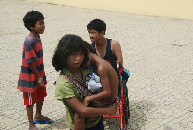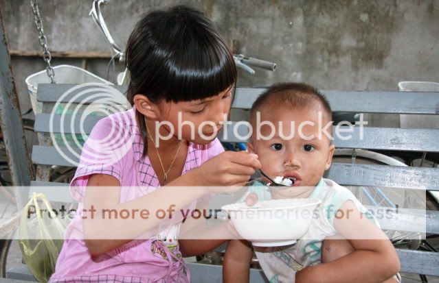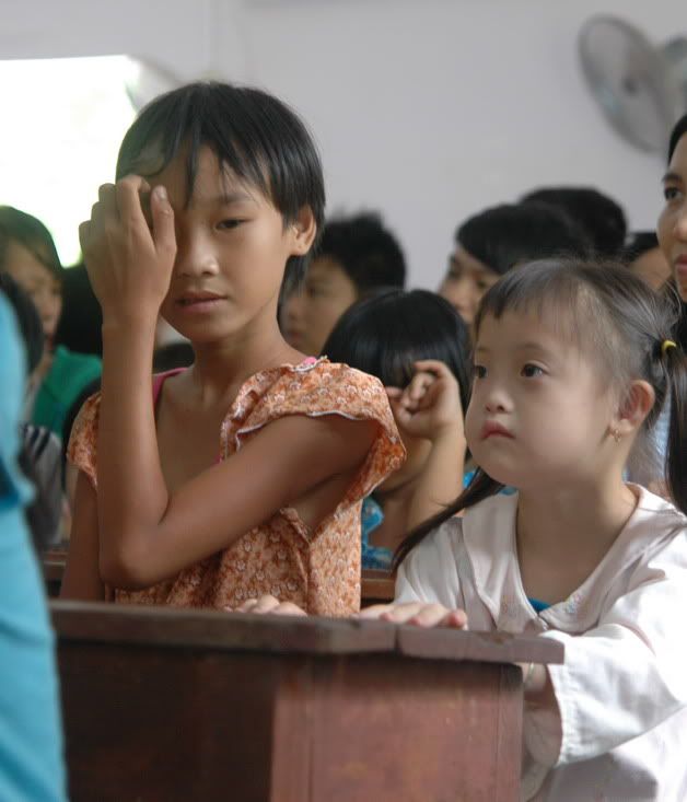 Các "Mặt trời bé thơ" tại Cô nhi viện Phú Hòa, nơi đại diện của Diễn đàn NNN vừa đến tặng quà: Tình chị em. Mọi người hãy để ý đến khuôn mặt và ánh mắt của đứa chị: nó mới dịu dàng, trìu mến và âu yếm làm sao!
