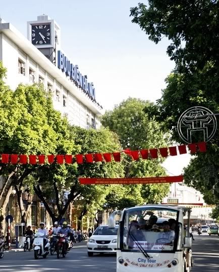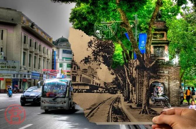 http://daumaytoaxe.com/forum/showthread.php?t=42 Ví như họ có bức ảnh sau về bến xe điện Bờ Hồ, chỗ bến ô tô buýt kiêm chỗ đỗ xe chật ních người và hàng rong hiện nay. Ảnh chụp năm 1954, đường phố phong quang sạch sẽ tuyệt vời: ![]() Và nay: