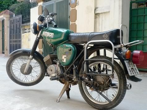 Hồi năm 1990, em và ông anh họ đi mua về hàng chục cái cho đội thợ xây của ông anh rể, dân Cự Khối, Gia Lâm. Xe cứ đóng thành từng cục bọc trong vải bao tải, về phải loay hoay lắp. Hồi đó trình độ lắp của bọn em khá lắm, mỗi ngày phải được 5, 6 chiếc. Sang Cự Khối ăn giỗ nhà ông anh rể, thấy chỗ đất nhão ở cổng “lốp kích nó giày xéo” he he. Thêm hình ảnh của “kích”: Bổ sung thêm: chiếc này chắc thuộc đợt người ta ra xe chắn bùn sơn cùng màu, trên đây em viết thường là chắn bùn màu đen. S51 Electronic được chuộng nhất vì máy nó tốt nhất, đánh lửa bằng bán dẫn nên ít tậm tịt. “Con biển 20” trong ảnh này thể hiện được đúng hiện trạng ngày nay: chỉ có lên Thái Nguyên là tìm được nhiều SIMSON mokick còn sót lại nhất. Hồi đó ở Phố Huế có anh C. buôn đá quý, thấy em thanh niên phóng xe máy rất khá nên thuê mang tiền vào Quỳ Châu để đưa cho người ta, rồi lại mang “hàng” ra Hà Nội cho anh ấy. Anh ấy mua một chiếc MZ ETZ150 y như trong ảnh, mới keng cho em đi. Em lận tiền vào người, mặc bộ “ga Tàu” lụng thụng, cối Tàu, giày bata Thượng Đình và lên đường. Những nguy hiểm, em xin phép không kể vì lạc đề. Còn đây là hình ảnh chiếc Xì-ta, và Sách hướng dẫn sử dụng của Habicht. Thêm ảnh của 1 chú SR50 nữa. Chiếc này còn giữ được cả đôi gương gin: Cuối cùng là CD90 Benly, hoàng tử chở phân: Lang thang một lúc trên mạng em tìm thấy cái bài về “đóng công” xe SIMSON post hầu các bác: Trích: