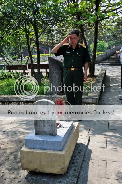 Hôm nay có đám cưới con chị Đặng Mai Phương, cùng tiểu đội cũ của tôi từ ngày mới đi bộ đội, anh em đại đội cũ ai còn ở Hà Nội biết tin đều đến chia vui cùng gia đình đồng đội cũ, gặp nhau tay bắt mặt mừng, có người đã cả 35 năm mới gặp lại. Chị Mai Phương là con gái liệt sĩ, đại tá Đặng Tính, nguyên chính ủy quân chủng Phòng Không - Không Quân, chính ủy đoàn 559 (binh đoàn Trường Sơn - binh đoàn duy trì và bảo vệ đường mòn Hồ Chí Minh huyền thoại). Trong kháng chiến chống Pháp, ông là chỉ huy cũ của cha tôi - năm 1947 ông là Tỉnh đội trưởng Hải Dương, khi đó cha tôi là huyện đội trưởng đầu tiên của huyện Ninh Giang, sau khi ông lên làm chính ủy mặt trận đường số 5 (1950-1951) thì cha tôi lên làm tinh đội trưởng Hải Dương (thay cho bác Vũ Hắc Bồng vào miền Nam kháng chiến, bác Bồng là tỉnh đội trưởng Hải Dương kế nhiệm của bác Đặng Tính, sau này là Đại sứ VN tại nhiều nước và là giám đốc sở ngoại vụ Tp HCM). Đại tá Đặng Tính hy sinh ngày 4.4.1973 do trúng mìn trên đường Trường Sơn, cùng với một số sĩ quan cao cấp khác. Mộ tưởng niệm ông hiện vẫn có trên nghĩa trang Trường Sơn, bên cạnh mộ của bao nhiêu người lính dưới quyền ông của đoàn 559 mà lần nào vào đó (gần đây nhất là đi cùng đoàn 3N tháng 4-2011, Hổ gừ cũng có ảnh chụp đã gửi lên 3N thì phải - cám ơn Hổ gừ nhiều nhé) tôi cũng đến viếng, kính cẩn chào một vị chỉ huy quân đội xông xáo, rất được bộ đội quý mến, cha của bạn đồng ngũ và là chỉ huy cũ của cha mình. Ảnh cũ 4.2011 (Hổ gừ chụp), bên mộ liệt sĩ, Đại tá Đặng Tính, ngày ông mất tôi mới chỉ là binh nhì ![]() Ngày ông mất, chúng tôi đang ở Hà Nội, trên đống đổ nát do bom B52 của xí nghiệp may quốc phòng X20 gần ga Giáp Bát và sân bay Bạch Mai, làm công tác xây dựng doanh trại chuẩn bị chỗ ở cho bộ đội đang tập từ sân bay Hòa Lạc về tổng duyệt trước duyệt binh ngày 1.5.1973. Chị Mai Phương cũng đang tham gia công việc cùng cả trung đội thì nhận được tin cha hy sinh. Có lẽ tôi không đủ lời để diễn tả nỗi đau xé ruột của một người lính, một người con gái trẻ mới chưa đầy 20 khi đột ngột nghe tin cha mình tử trận. Tìm trên Internet, thấy cái ảnh này chụp trước ngày ông (hàng đầu, thứ 3 từ trái sang) lên đường vào mặt trận, chị Mai Phương khi đó mới 18, vừa mới đi bộ đội, đứng cạnh cha ![]() Nếu ông không hy sinh thì sau ngày giải phóng ông chắc cũng sẽ được phong vượt cấp lên trung tướng cùng với Tư lệnh đoàn 559 Đồng Sĩ Nguyên. Ảnh chụp hôm nay trong đám cưới con chị Phương. Bên cạnh chị là trung đội trưởng cũ của chúng tôi ngày mới vào bộ đội, anh Tuấn "Mốc", 7 năm lính Trường Sơn từ 1964 đến 1971 - gọi như vậy là vì tóc anh bị ảnh hưởng của chất độc hóa học rụng hết, ngày ra Bắc không sao mọc lại được, đầu mốc trắng, mãi sau này mới mọc lại được 1 ít.