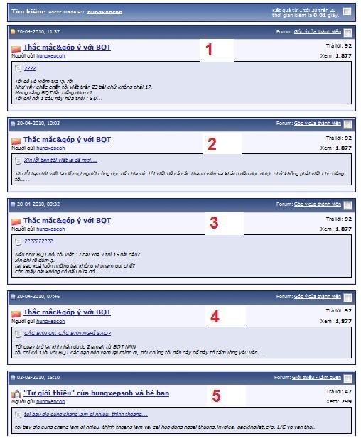 Hiện tại bạn đã có 16 bài trên 4R. Bạn có thể tìm lại tất cả các bài của bạn một cách rất dễ dàng bằng cách vào trang cá nhân của bạn rồi xem tất cả các bài bạn đã post. Hay là bạn chưa thạo cách sử dụng các tiện ích của diễn đàn mà đã vội đi hỏi (hay trách) Ban quản trị?