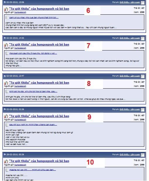 Tôi chỉ muốn biết các bài tôi viết góp ý BQT các ngày cuối tháng 2/2010 dầu tháng 3/2010 dâu?
