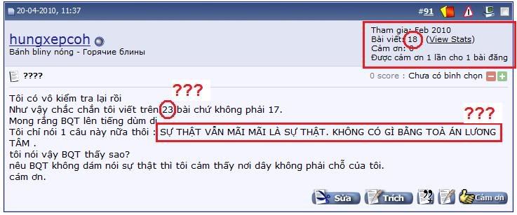 Tôi hy vọng lần này bác Hungxepcoh sẽ không còn thắc mắc nữa. 20 bài viết của bác bị xóa 2 bài thì còn 18. Nếu bác không đếm được hoặc không trừ được, tôi rất sẵn lòng giúp bác việc này.