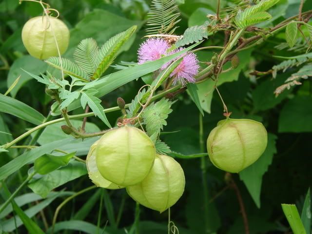 Bên cạnh hoa mắc cỡ tím là hoa gọi là gì ha chị? Hoa quả chuông?Khi là trẻ con, bọn em hay tìm hái về và bóp cho chúng nổ nghe lụp bụp