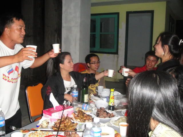- Anh, chờ em chút nhé, em cho con ngủ trước! ( nàng nói với chàng, lúc này, chàng còn đang tiếp các vị khách của 3N QKĐN. Chẳng biết mèo nào cắn mỉu nào đây?( xin lưu ý! chàng mặc áo trắng )