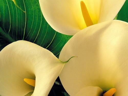 Hoa Rum ( Каллы ). Có nhiều màu sắc, ở VN thường thấy màu vàng và trắng.
