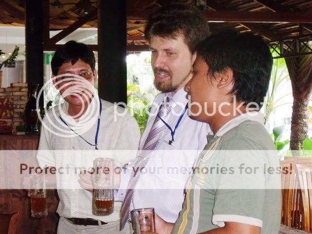Các bác có biết không? Bác nhnam là đàn anh của AT, biết nhau qua ĐT từ năm 2007 vì là đối tác, gặp nhau ở HN vừa rồi, thế mà không hiểu sao AT vẫn cứ quen xưng chị với bác đó, người đâu mà trẻ thế không biết, chắc chắn phải có bí quyết gì đây. Giá mà bác ấy san sẻ cho mình 1 ít nhỉ? AT chỉ cần trông trẻ lại vài tuổi thôi thì đời biết đâu ….đổi khác? Lần này do bác nhnam kéo theo bạn Саша, bạn này ở VN 5 năm rồi, cho nên tiếng Việt nghe thì hiểu hết mà không nói được, thành ra chiều khách, tất cả đều chuyển sang nói rặt tiếng Nga, vui thì thôi rồi, chủ và khách chạy vòng quanh và đổi chỗ như đèn cù đến chóng cả mặt, mà khổ nỗi cái khỏan tiếng Nga thì AT hơi bị dốt, nghe chẳng hiểu gì, mặc dù cũng nói như vẹt, phải chi có thầy MU của AT ở đó dịch cho mấy bác vắng mặt nghe…có phải thú vị không?