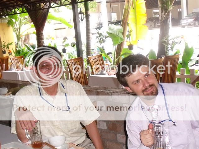 Eo ơi! Lần sau AT chả dại gì đi ọp đúng giờ nữa đâu…Chỉ vì nghe giang hồ đồn đại là lần này có cả mấy bác OTT, LSS và VDD mà AT phải từ chối mọi cuộc vui cuối tuần, lọ mọ dậy từ 9g kém 15 sáng thứ bảy rồi “cắt cơm, bơm xe, nghe thời tiết, liếc đồng hồ…” thấp thỏm chờ mãi mới đến giờ hòang đạo để được xuất hành về quận nhất. Nhờ thế mà lần đầu tiên được vinh dự chiếm chỗ HM, ngồi cạnh bác Cả SG nhé. Kể cũng hơi dại vì dù trước khi đi đã xức đẫm nước hoa Coco Chanel, thế mà không ai khen nửa lời, vì mùi thơm của nhà bác tắm đục nửa dòng Hương giang át mất rồi.