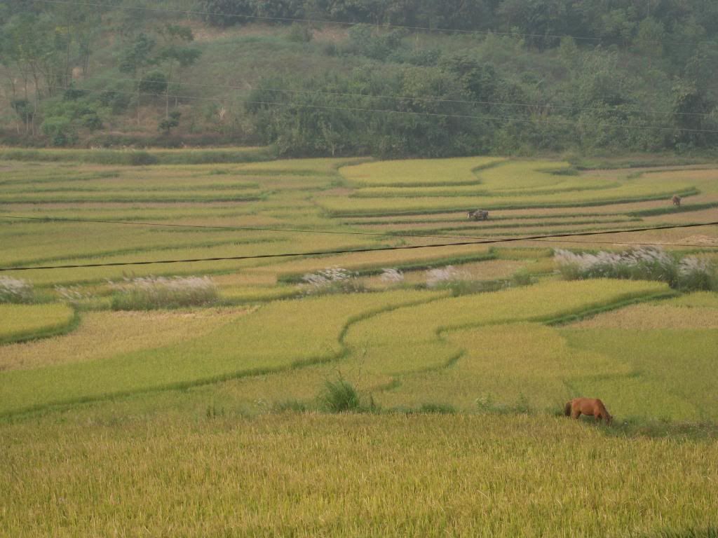 Tháng 10 âm rồi, dưới xuôi các cánh đồng chỉ còn trơ gốc rạ, nhưng ở đây lúa mới bắt đầu chín: