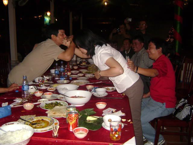 Tuyệt vời bác Chaika ạ! Em cảm ơn bác rất nhiều. Bà xã em sẽ rất hãnh diện và tự hào là có ông chồng già và xấu trai thế mà lại được chụp ảnh chung này, vòng tay uống rượu này, lại còn được ôm hôn thắm thiết với 2 hoa khôi của QKSG nữa. Ôi vui quá đi mất. Một lần nữa xin cám ơn bác!