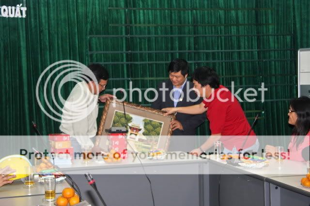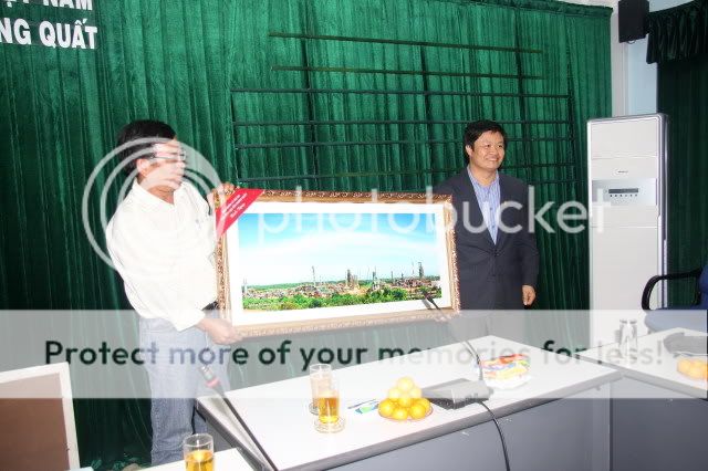 LĐ NMLD Dung Quất tặng quà lưu niệm cho Đoàn tham quan. Bác Mì Chả thay mặt đoàn nhận: